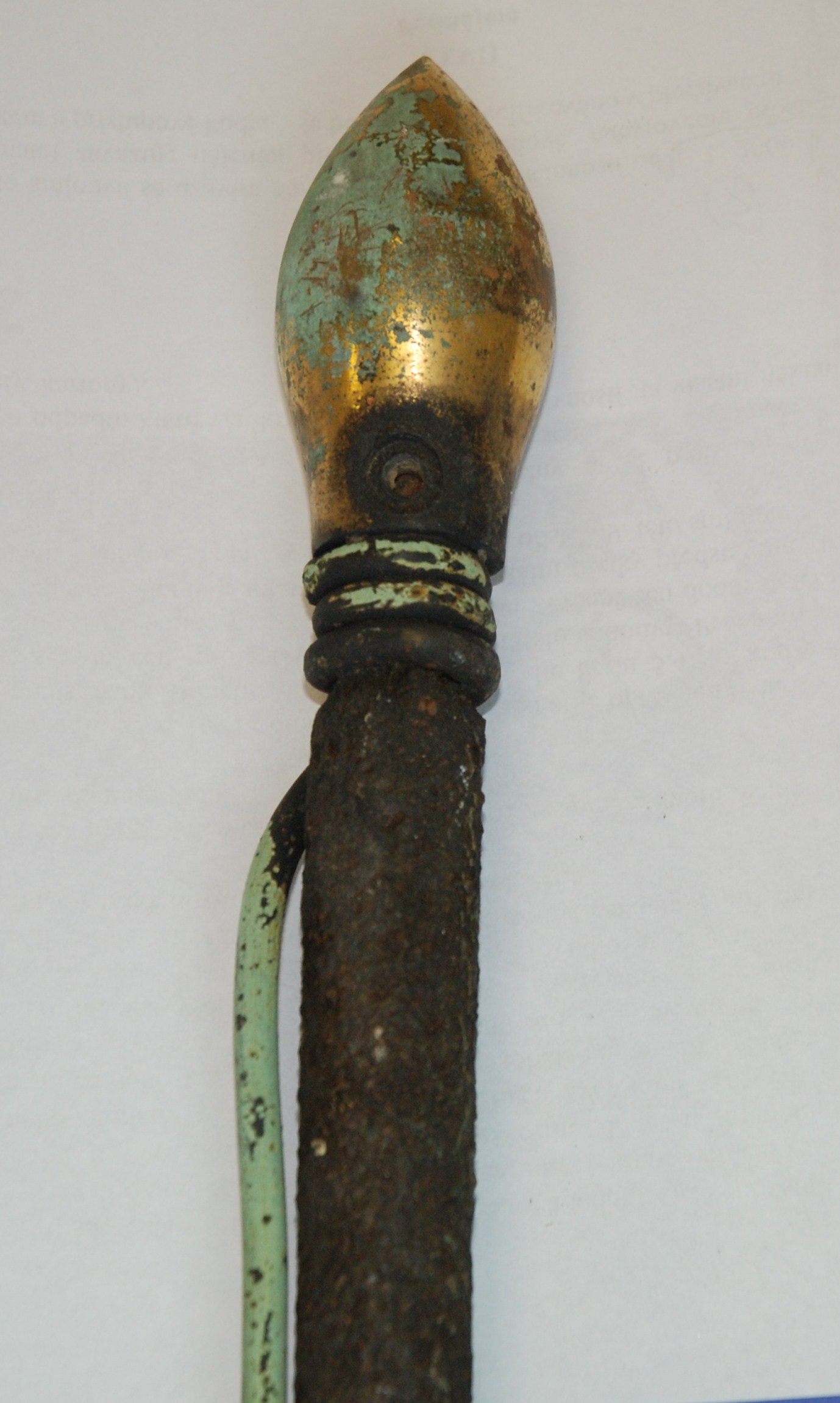 Ocelový jímač s mosaznou zlacenou jímací špicí, svod řešen obtočeným měděným drátem D.Šalanský Chomutov