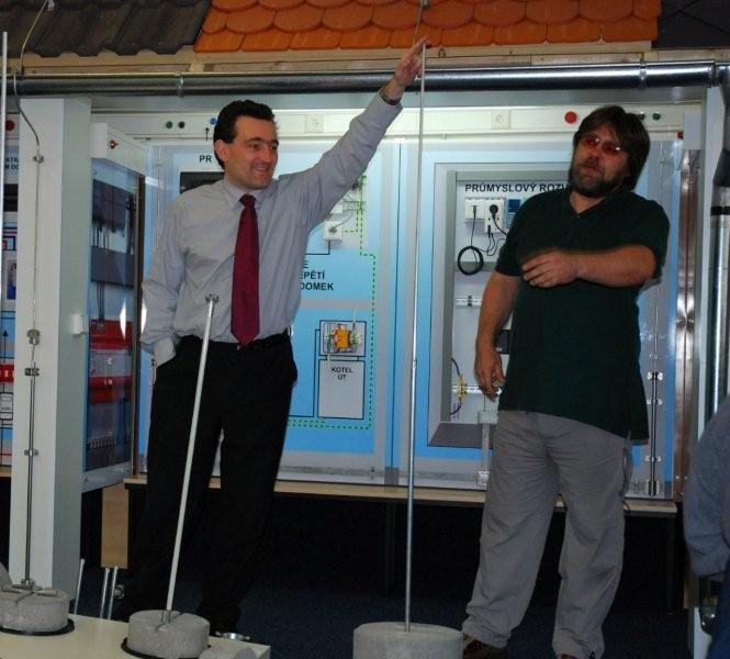 Honza a Dalibor školíTakhle to vypadá, když se ochrana před bleskem vysvětluje.