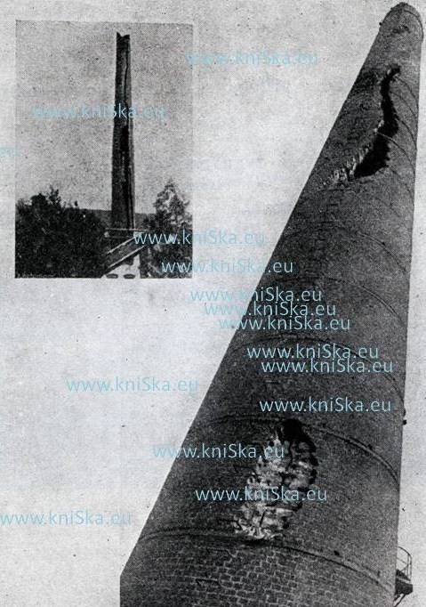Komín poškozený bleskemOpět jedna zajímavost z naší oblíbené knihy: Bouřky a ochrana před bleskem / Ladislav V. Řihánek, Josef Postránecký. Československá akademie věd, 1957